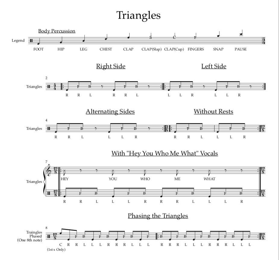 Complete Musical Notation for Part Three of the instructional DVD/video series Body Music with Keith Terry.