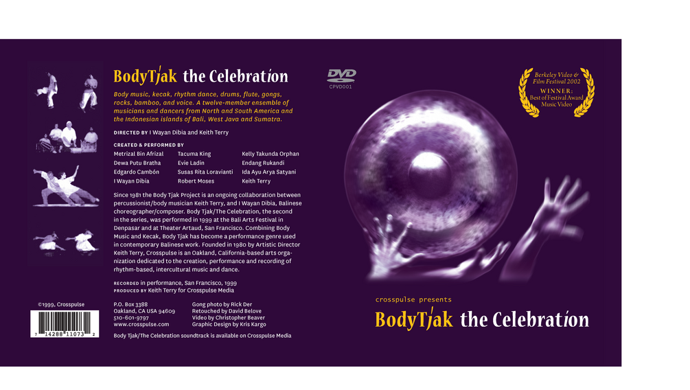 Since 1981 the Body Tjak Project is an ongoing collaboration between percussionist/body musician Keith Terry, and I Wayan Dibia, Balinese choreographer/composer. Body Tjak / The Celebration, the second in the series, was performed in 1999 at the Bali Arts Festival in Denpasar and at Theater Artaud, San Francisco. Combining Body Music and Kecak, Body Tjak has become a performance genre used in contemporary Balinese work. Founded in 1980 by Artistic Director Keith Terry, Crosspulse is an Oakland, California based arts organization dedicated to the creation, performance, and recording of rhythm-based, intercultural music and dance.